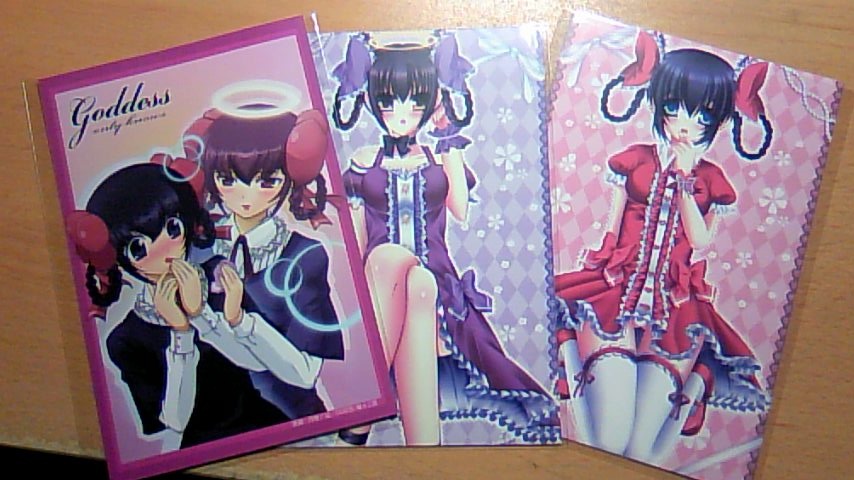 それと、ポストカードもいただきました!本来ならこの3種類から1枚ランダム封入なんですが、発案に協力したということで特別に全種類いただきまして……い、いいのかなあ。自分は何もしてないというのに。ただ天理成分満載なので、口をつむんでもらっておく。こやつ、パンチラしておるぞ!凝視だよ!