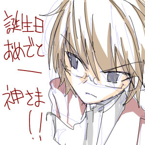 書いてあるセリフから察するに、桂馬くん誕生日記念の小さいイラストらしいっすね。なんでお蔵入りになってたんでしょうかねー。かっこいいのに、桂馬くん。